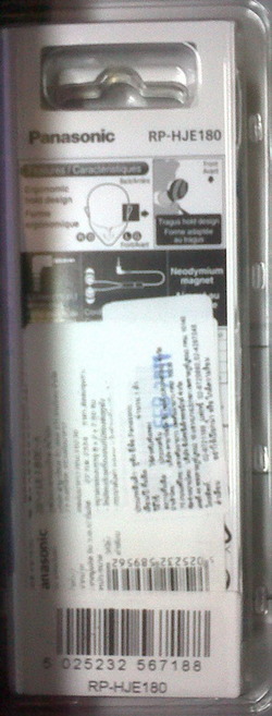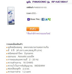 ขาย หูฟัง PANASONIC รุ่น RP-HJE180A-F 500 บาท