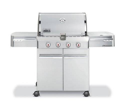 ขายเตาอบปิ่งย่าง Weber 1710001 Summit S-420 Propane Gas Grill Stainless Steel Weber 1710001 Summit S-420 Propane Gas Grill, Stainless Steel The Weber Summit E-420 is great for you outdoor grilling needs with it s 4 burners Capacity is 538-square-inch primary cooking area and 112-square-inch warming rack for 650 square-inch total cooking area Comes with 4 stainless steel burners with individual ignitions, and 12,000-Btu flush-mount side burner Very easy 10-minute assembly with no more than 8 fasteners and a single tool (included) Includes 2 heavy-duty front locking casters and 2 heavy-duty back swivel casters; 48,000 BTU per hour input
