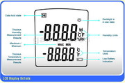 - ความละเอียดสูงกับ 4 ค่าตัวแปร °C, °F, %RH(relative humidity), td (dew point temperature)