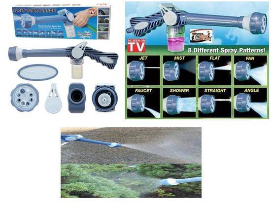 ปืนฉีด น้ำอเนกประสงค์ Water Jet spray ออกแบบภายในเพื่อเพิ่มแรงดันน้ำให้สูงขึ้นพร้อมหัวฉีด 8 แบบพร้อมกระบอกใส่น้ำยา ให้คุณใช้งานได้หลากหลาย ไม่ต้องไปซื้อเครื่องฉีดน้ำแรงดันสูงราคาหลายพันบาทโดยตัวปืนฉีดมีกระบอกใส่ น้ำยา เมื่อเลือกฟังก์ชั่นที่ผสมกับน้ำยา น้ำจะมีแรงดันดึงน้ำยามาผสมและฉีดผสมกับน้ำออกมา ไม่ ว่าจะ ล้างรถ พ่นโฟม ทำความสะอาดพื้น ล้างแอร์ ล้างคอยส์ร้อน รดน้ำต้นไม้ ฉีดปุ๋ยโดยใส่ในกระบอกน้ำยา ฉีดยาฆ่าแมลง ใช้เล่นน้ำสงกรานต์ก็ยังได้ สุดคุ้มดูวีดีโอการใช้งานที่นี่