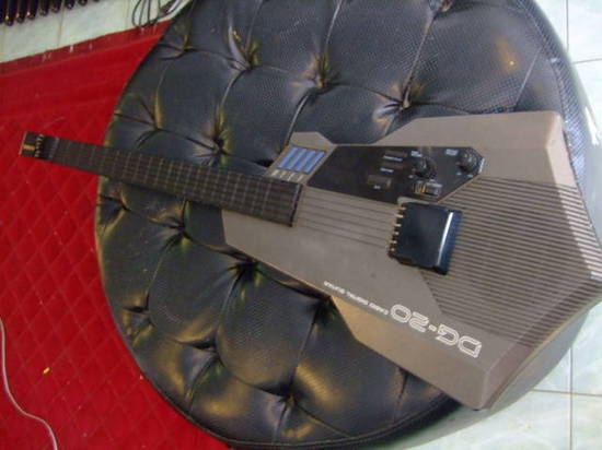 The Casio DG-20 is a stringed guitar, but every time you play those strings, corresponding MIDI data is sent to the onboard computer, which plays the sounds of whichever instrument you've selected! Naturally the sounds are not mind-blowingly awesome, but some are actually pretty usable. You can either play the DG-20 as a standalone guitar via its built-in speakers, or for better quality sound you can plug it into your stereo. Add to this the fact that it can output MIDI to whatever synths/VSTs you want, and its a pretty fun wee addition to any home studio!