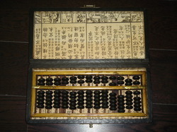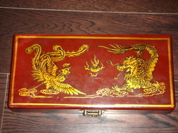 ลูกคิดจีน สุดคลาสสิค บรรจุุอยู่ในกล่องไม้บุด้วยหนังแท้ ลายมังกร&หงส์ ขนาดกล่อง 26.5X12.5 ซม. หายาก