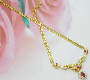 สร้อยคอ ทองไมครอน พร้อมจี้ ทับทิม เพชร สวิส 0.70 กะรัต ห้อยตุ้งติ้ง สวย สุดหรู งานสวย หนัก 1 บาท