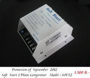 เทคนิคการสตาร์ท คอมเพรชเซอร์ แบบใหม่ ไม่ให้กระชากไฟฟ้า ชุดป้องกัน แอร์ สตาร์ทกระชากกระแสไฟฟ้า ทำให้แรงดันไฟฟ้าตก เป็นเหตุให้ Computer Reset หรือเครื่องไฟฟ้าอื่น ประสบปัญหาด้วย ไม่ต้องใช้เมคเนติดส์ อีกต่อไป มีระบบป้องกันแรงดันไฟฟ้าตก และไฟฟ้าเกิน ในตัว มีระบบหน่วงเวลาก่อนทำงาน 1 นาที ในตัว SOFT2 ราคา 1650 บาท เล็ก 0817768057