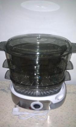 ซื้อมายังไม่เคยใช้คะ สินค้ายังคงอยู่ในใบรับประกันคะ สภาพสินค้า100 % เป็นการทำอาหารที่ไม่ต้องใช้น้ำมัน รักษาคุณค่าอาหารและวิตามิน มอเตอร์เครื่องหุ้มด้วยพลาสติกแข็งกันความร้อน ถาดนึ่งพลาสติกใส 3 ชั้น เติมน้ำได้ในระหว่างใช้งาน ฝาปิดพลาสติกใส ปุ่มตั้งเวลาการทำงาน ถาดหลุมอเนกประสงค์ สายไฟ