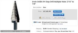 ต้องการขายดอกเจาะStep Drill ยี่ห้อ UNIBIT # 4 (MADE IN USA by IRWIN) เจาะได้12ขนาดตั้งแต่ 3/16นิ้ว-7/8นิ้ว ก้านจับ3หุน ของใหม่แท้100% ราคา1270.- ติดต่อ022512637 พรเทพ