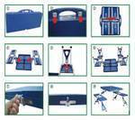 โต๊ะพับได้ มีสองสีคือ น้ำเงิน และ สีแดง รายละเอียดเพิ่มเติม