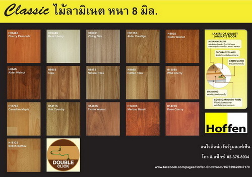 พื้นไม้ลามิเนต 8 มิล* ราคาพิเศษ พร้อมช่างติดตั้งตรม.ละ 646 บาท สนใจติดต่อสอบถามข้อมูลเพิ่มเติมได้ที่โชว์รูมฮอฟเฟ็น T 02-375-8934, 02-375-8935, T02-375-8937, 02-375-8938 Fax. 02-704-8240 เวลาทำการ วันจันทร์ –วันเสาร์ 9.00 –18.00 น. เwww.hoffenasia.com *เฉพาะสินค้าที่ร่วมรายการส่งเสริมการขายเท่านั้น / *เงื่อนไขเป็นไปตามที่โชว์รูมกำหนด