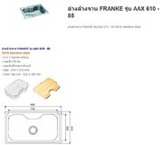 อ่างล้างจานฝังสแตนเลสยี่ห้อ FRANKE รุ่น AAX 610 - 85 ของแท้ใหม่100% ราคา5950.- ติดต่อ022512637 พรเทพ 18/10 stainless steel • อ่าง 1 หลุมขนาดใหญ่ • หลุมลึก 20 ซม. • แบบติดตั้งบนเคาน์เตอร์ • Size : 840 X 510 mm. • Work Top Cut : 820 X 490 mm.
