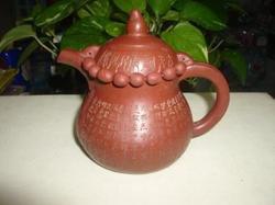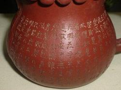 ปั้นชาจีนทรงโบราณ ผิวด้านนอกแกะสลักเป็นอักษรจีนโบราณ เป็นงาน HANDMADE จากเมืองจีน เจ้าของเก็บสะสมมานาน สินค้าสภาพใหม่ยังไม่เคยใช้งาน