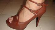 รองเท้าส้นสูงหนังแท้สีน้ำตาล มือสองสภาพ 99 % สูง 4 1/2 นิ้ว ไซส์ 38 ราคาพร้อมส่ง