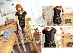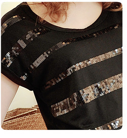 เสื้อยืด ผ้าค๊อตตอนยืดแต่งเลื่อมโทนสีดำ แบรนด์ LELESTYLE