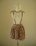 SALE เอี๊ยมกระโปรงผ้าซาตินผูกไหล่สีเบจลายดอก