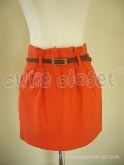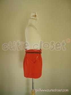 SALE ลดราคา กระโปรงผ้าเกาหลีทรงขนมจีบสีแดงอมส้ม แถมเข็มขัด