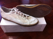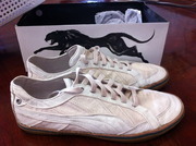 ขายรองเท้า PUMA Alexander McQueen Collection ivory canvas 'Vulcan' sneakers มือสอง พร้อมกล่อง สภาพ90% ใส่มาไม่กี่ครั้ง Alexander McQueen known for inovative and chic design, lends a hand to Puma to create fabulous shoewear one could only dream of.