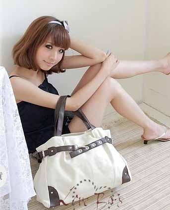 กระเป๋าสะพายแฟชั่นเกาหลี แบบผ้า นำเข้า สีครีม - พรีออเดอร์IS013