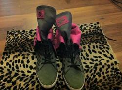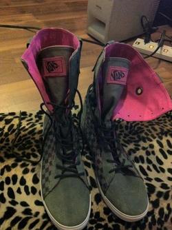 ขายรองเท้า vans หุ้มข้อยาว ลายตาราง ข้างนอกสีเทาดำ ข้างในสีชมพู เชือกสีดำ ไซด์ 8 ของแท้้ ซื้อมาจากใน shop อเมริกา ราคาต่อรองกันได้ สนใจติดต่อเข้ามาขอดูรูปเพิ่มเติมได้ค่ะ