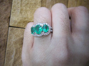 แหวนมรกตโคลัมเบีย 3 เม็ดล้อมเพชร