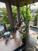 -พื้นที่นั่งภายนอก กึ่งเอาท์ดอร์ ขนาด 100 ตารางเมตร ตกแต่งด้วยชุดสนามสไตล์นอร์ดิก พร้อมเฟอร์นิเจอร์และร่มสนาม