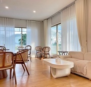 - พร้อมเฟอร์นิเจอร์ไม้ ม่านขาว built in เคาเต้อบาร์ มีมุมชั้นหนังสือ ห้องครัวติดตั้งเตา เครื่องดูดควันพร้อมอุปกรณ์ครบ