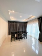 5) มีวอลเปเปอร์ และม่านทั้งหลัง, มีโซฟาตัวใหญ่ 1 ชุด และมีโต๊ะทานอาหารตัวยาว 6 ที่นั่ง,