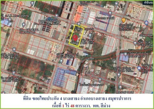 ขายที่ดินสีม่วง ซอยไทยประกัน ถนนเทพารักษ์ เนื้อที่ 1- 0 - 48 ไร่ ตำบลบางเสาธง อำเภอบางเสาธง สมุทรปราการ 10540