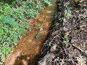ฝั่งตรงข้ามเห็นวิวเขาสวย มีร่องน้ำเล็กๆหน้าแปลง
