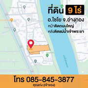 ขายที่ดินแปลงสวย 9 ไร่ ติดกับแม่น้ำเจ้าพระยา ติดถนนทางหลวงหมายเลข 309 อำเภอไชโย จังหวัดอ่างทอง (เจ้าของขายเอง)