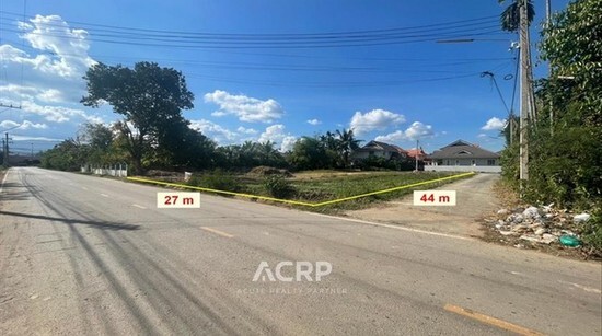 ขายที่ดินใกล้โรงพยาบาลสันทราย จ.เชียงใหม่ ที่ดิน 300 ตร.ว. หน้ากว้าง 27 เมตร ลึก 44 เมตร พื้นที่สี่เหลี่ยมแปลงสวย เหมาะสร้างบ้านพักอาศัย หรือทำร้านอาหาร ร้านกาแฟ จากโรงพยาบาลสันทรายเดินทางเพียง 1 กิโลเมตร ทั้งยังใกล้มหาวิทยาลัยแม่โจ้ ตลาด และเดินทางไปเซ็นทรัลเทรัลเฟสเพียง 14 กิโลเมตร