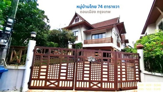 ขายบ้านเดียวลักษณะทรงไทยประยุกต์หลังใหญ่ 2 ชั้น หลังริม สภาพใหม่และพร้อมอยู่ แถมเฟอร์ให้ ตู้เตียง ชุดไม้สัก เนื้อที่ 74 ตรว. 4 ห้องนอน 4 ห้องน้ำ 1 ครัว หมู่บ้านบ้านไทย ซอยสรงประภา30 ถนนสรงประภา-เดชะตุงคะ1 ดอนเมือง การเดินทางสะดวกกรุงเทพมหานคร มีร้าน FORESTA CAFE (ฟอเรสต้า คาเฟ่) เป็นร้านที่ใหญ่ที่สุดในดอนเมือง ที่ร้านมีสวนน้ำตก สวนน้ำ ร่มรื่นมาก เขต ดอนเมือง กรุงเทพ