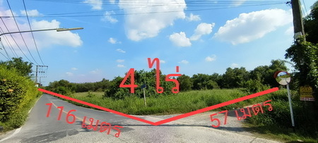 ขายที่ดินเปล่าแปลงมุม 4 ไร่ คลองหก หน้ากว้าง 116 เมตร ลึก 57 เมตร ขาย 9,500 บาท/ตารางวา