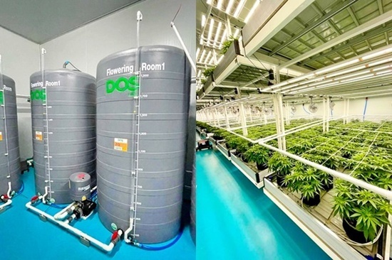 - ห้องปลูกกัญชาแนวตั้ง (ชั้นวาง) มี 3 ห้อง แต่ละห้องมีต้นกัญชาประมาณ 680 ต้น ผลิตได้ 45-60 กก. / รอบ / ห้อง