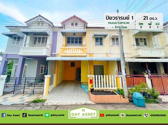 ขายทาวน์เฮ้าส์ 2 ชั้น หมู่บ้าน ปิยวรารมย์ 1 (Piyawararom 1) ถนนบางกรวย-ไทรน้อย แถม แอร์/ต่อเติมระเบียงหลังบ้าน เนื้อที่ 21 ตร.ว. ขายเพียง 1,350,000 ล้านบาท