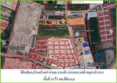 ขายถูกที่ดินถนนบัวนครินทร์-หนามแดง เนื้อที่ 15 ไร่ (6,000 ตรว.วาละ 50,000บาท) ต.บางแก้ว อ.บางพลี จ.สมุทรปราการ