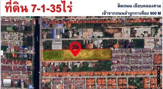 ขายที่ดินเปล่า ติดถนนเลียบคลอง 3 อำเภอลำลูกกา จังหวัดปทุมธานี