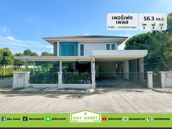 ขายบ้านเดี่ยว 2 ชั้น หมู่บ้าน เพอร์เฟค เพลส รังสิต-ทางด่วนบางพูน หลังมุม เนื้อที่ 56.3 ตร.ว. ขายเพียง 7,990,000 ล้านบาท