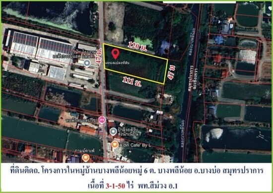 ขายถูกที่ดินผังสีม่วง ถนนบางนาตราด กม.33 (เนื้อที่ 3-1-50 ไร่ รวมเป็นเงิน 25,312,500 บาท) บางพลีน้อย บางบ่อ สมุทรปราการ
