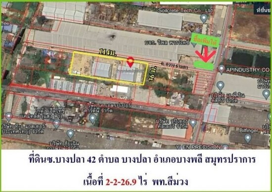 ขายโกดังคลังสินค้าพร้อมที่ดินสีม่วงซอยบางปลา42 - เทพารักษ์ (เนื้อที่ 2-2-26.9 ไร่ รวมเป็นเงิน 64 ล้านบาท) บางปลา บางพลี สมุทรปราการ