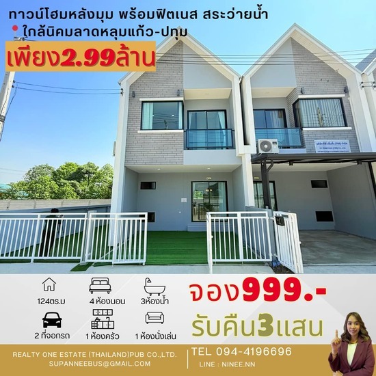 ทาวน์โฮมหลังมุมสไตล์บ้านแฝด แนวนอร์ดิก บ้านโครงการใหม่ฟังก์ชั่นครบ ราคาดีที่สุดในลาดหลุมแก้ว-ปทุมธานี ใกล้นิคมลาดหลุมแก้ว ทาวน์โฮมหลังมุม