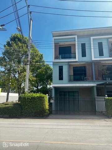 #บ้านชญาดาแอทเวิร์ค ทาวน์โฮมหลังริมให้เช่า พร้อมแอร์และเฟอรืนิเจอร์ เปิดสำนักงานออฟฟิศหรืออยู่อาศัยก็ได้ หลังแรกติดป้ายโครงการค่ะ ต่อเติมทำกันสาด ด้านข้างด้านหลัง