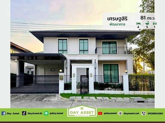 ขายบ้านเดี่ยว 2 ชั้น หมู่บ้าน เศรษฐสิริ พัฒนาการ เนื้อที่ 81 ตร.ว. ขายเพียง 17,990,000 ล้านบาท