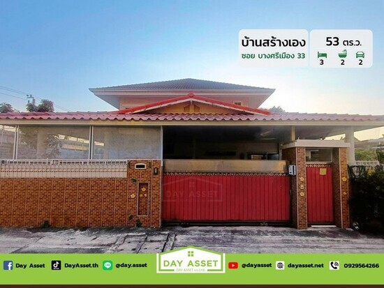 ขายบ้านเดี่ยว 2 ชั้น สร้างเอง ซอยบางศรีเมือง 33 (ท่าน้ำบางศรีเมือง) แถม แอร์/ชุดโต๊ะกินข้าว/โซฟา/เตียงนอน ใกล้รถไฟฟ้าสายสีม่วง เนื้อที่ 53 ตร.ว. ขายเพียง 4,750,000 ล้านบาท