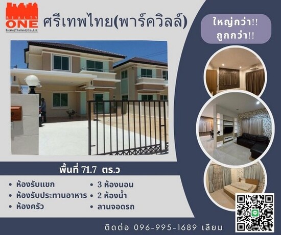 ขายบ้านเดี่ยว 2 ชั้น หมู่บ้านศรีเทพไทย (พาร์ควิลล์)