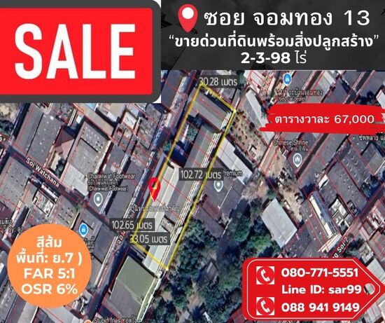 ขายที่ดินพร้อมสิ่งปลูกสร้าง ทำเลทอง ซอย จอมทอง 13 ขนาด 2-2-98 ไร่