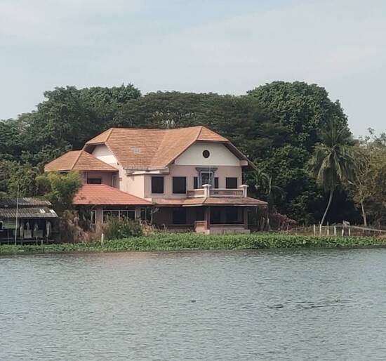 ทำเลทอง ติดริมแม่น้ำนครชัยศรี บรรยากาศเงียบสงบ ลมพัดเย็นสบาย เหมาะสำหรับสร้างบ้านพักตากอากาศ รีสอร์ท หรือร้านอาหารริมแม่น้ำ