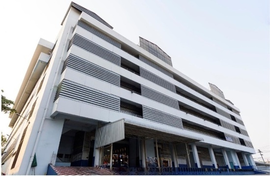 อาคาร: 5 ชั้น, ยกพื้น, ผนังอิฐ, หลังคาเมทัล
