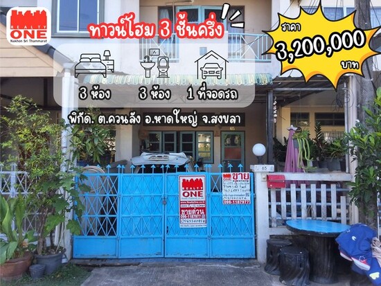 ทาวน์โฮม 3 ชั้นครึ่ง ทำเลดี ใจกลางหาดใหญ่ ใกล้โลตัสเพียง 400 ม.