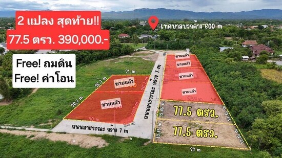 ขายที่ดินจัดสรรเริ่ม 77.5ตรว. ลดสุด 350,000บาท ผ่อนตรงได้ วิวเขา สาธารณูปโภค ต.บวกค้าง อ.สันกำแพง เชียงใหม่
