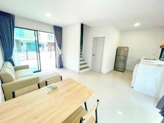 MRT Rangsit 1.9km. Major Rangsit 1.7km. For rent 2-storey townhouse 3bed 2bath clean comfortable 145sq.m. 18sq.wa. Bangkok Rangsit 4 km. with furniture electrical appliances