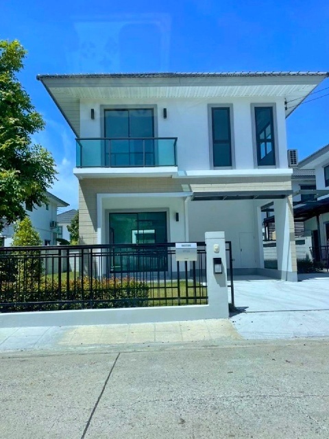 พร้อมเฟอร์ บางเสาธง บางบ่อ 3นอน ให้เช่าบ้านเดี่ยวหรู 2ชั้น 64ตร.วา. 254ตร.ม. รพ.บางนา 2 1.9กม. 3น้ำ บางนาการ์เค้น ABACบางนา 2.8กม.